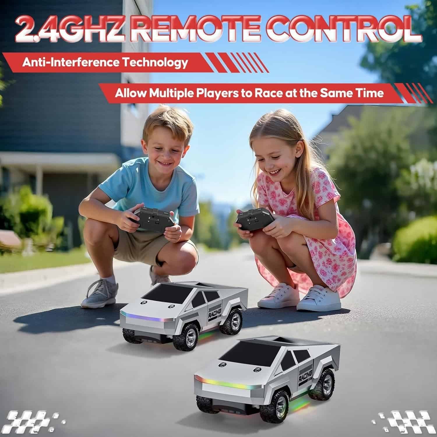 You get a compact, action-packed remote control truck that’s built to thrill: bold angular styling, multicolor LED lights, a roomy load space, and a powerful drivetrain that tackles grass, gravel, sand, and indoor floors. It’s tuned for kids and beginners, but fast and responsive enough to keep older kids engaged. Two rechargeable batteries and a long-range 2.4GHz controller mean more running time and fewer interruptions. If you want an RC toy that’s easy to use, durable, and packed with features, this one’s designed with you in mind.