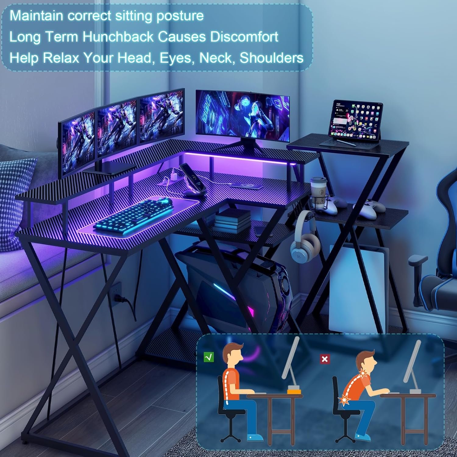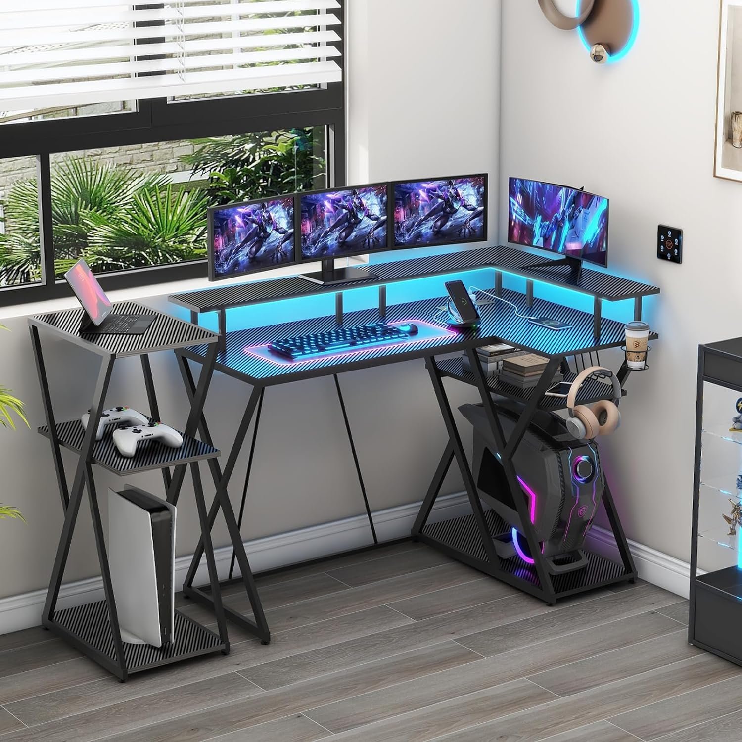 47 Inch L Shaped Gaming Desk with LED Lights: The Ultimate Corner Desk for Enthusiasts
