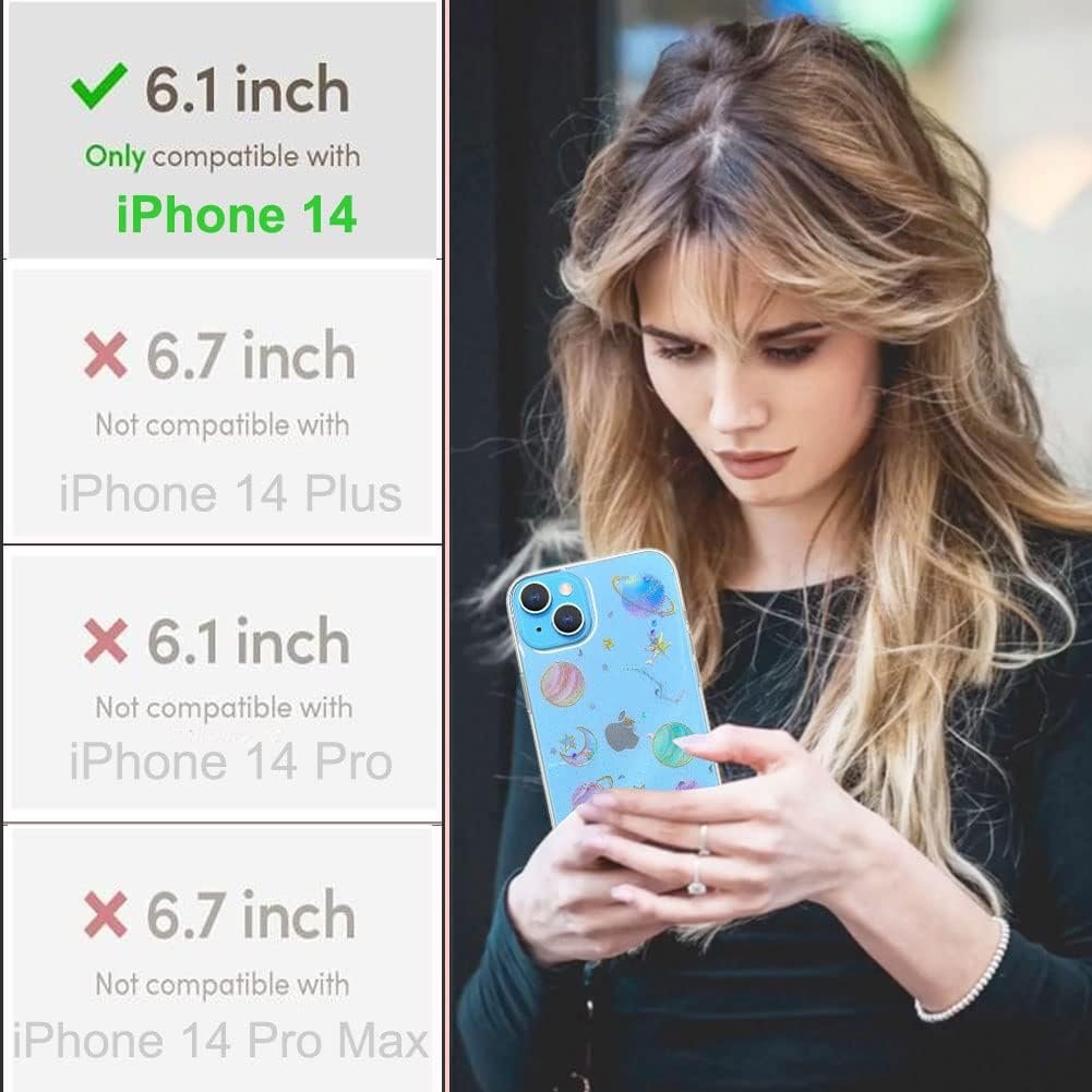 The "Abbery Designed for iPhone 14 6.1 inch Case Space Theme" is exactly what my phone and I needed for a whimsical yet elegant transformation. Imagine glittering stars and moon planets capturing just the right amount of sparkle, lifting your phone from basic to celestial. Made from clear TPU and silicone, it offers not only durability and a smooth feel but also ensures your phone remains a translucent beauty. It's especially ideal for anyone wanting a touch of outer space aesthetics without compromising the true color of their device. So, if you're aiming to jazz up your iPhone 14, and perhaps gift a piece of the cosmos to a friend or family member, this case might be your ticket. Have you ever met a phone case so charming that it feels like it's straight out of a fairytale?