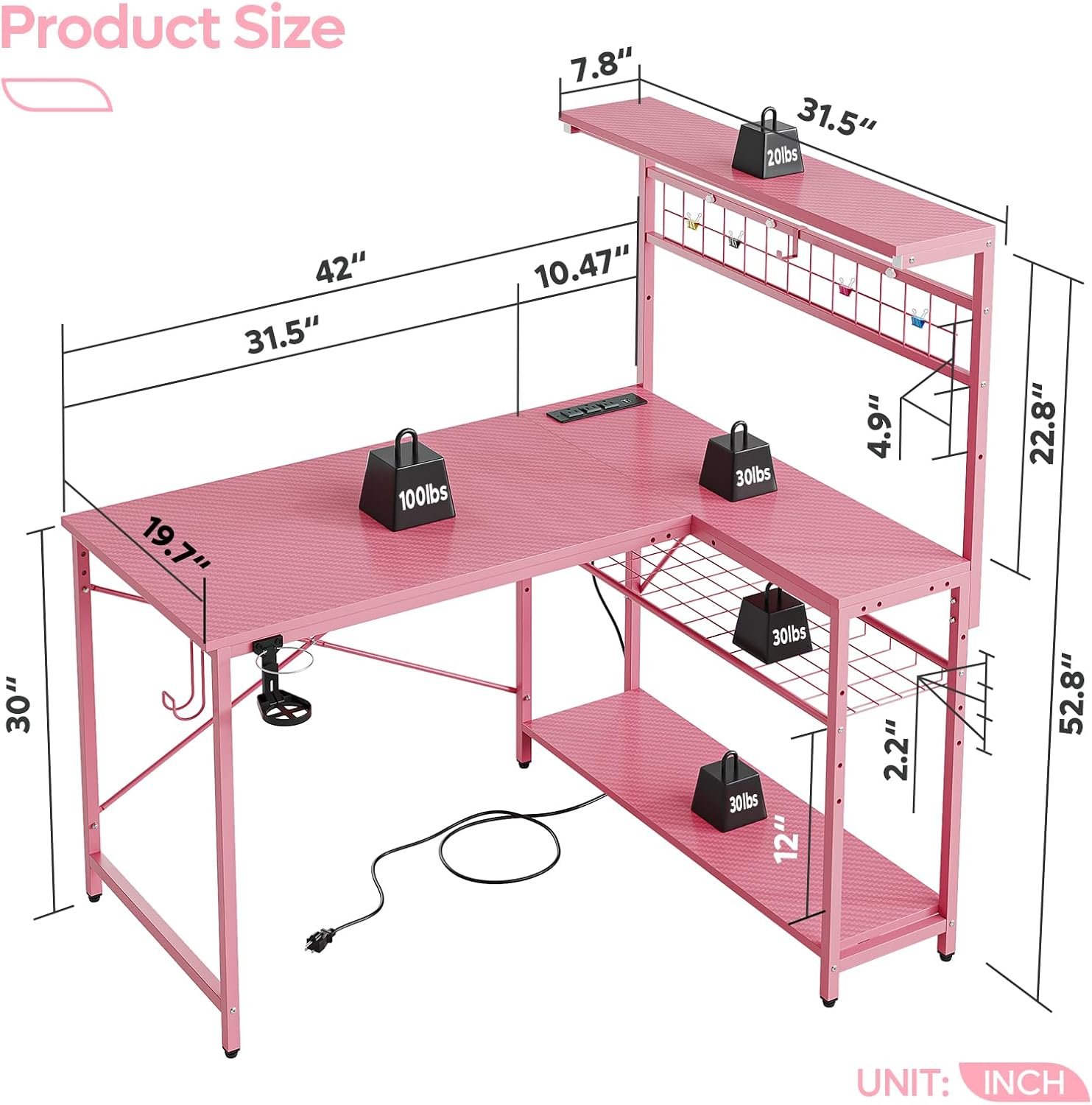 | Workspace | L-shaped with top hutch |