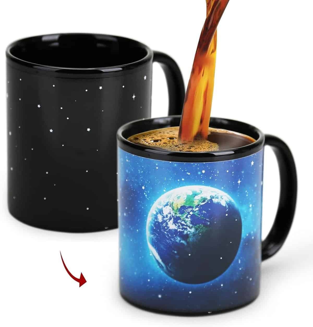 Let's admit it, the standout feature here is the color-changing magic. Pour your cold liquid of choice, and you'll have a mug that might look like it was plucked right out of a starry night. But the real enchantment begins when you add hot liquid; you get to watch, in utter delight, as the planets and the Milky Way make their grand appearance.