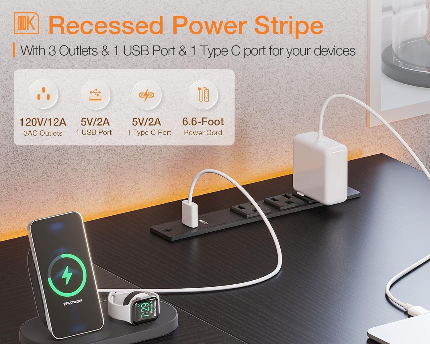 Let’s begin with the spectacle of modern convenience: power outlets. Gone are the days of needing to perform minor electrical surgeries to plug my phone, gaming gear, Bluetooth devices, and perhaps an absurd electronic coffee warmer into a usable outlet. This desk comes equipped with not one, not two, but three power outlets, one USB charging port, and one Type-C port. So, while you’re immersed in an intense gaming session or deep into writing your next New York Times Best Seller, you won't need to pause to deal with dead batteries.