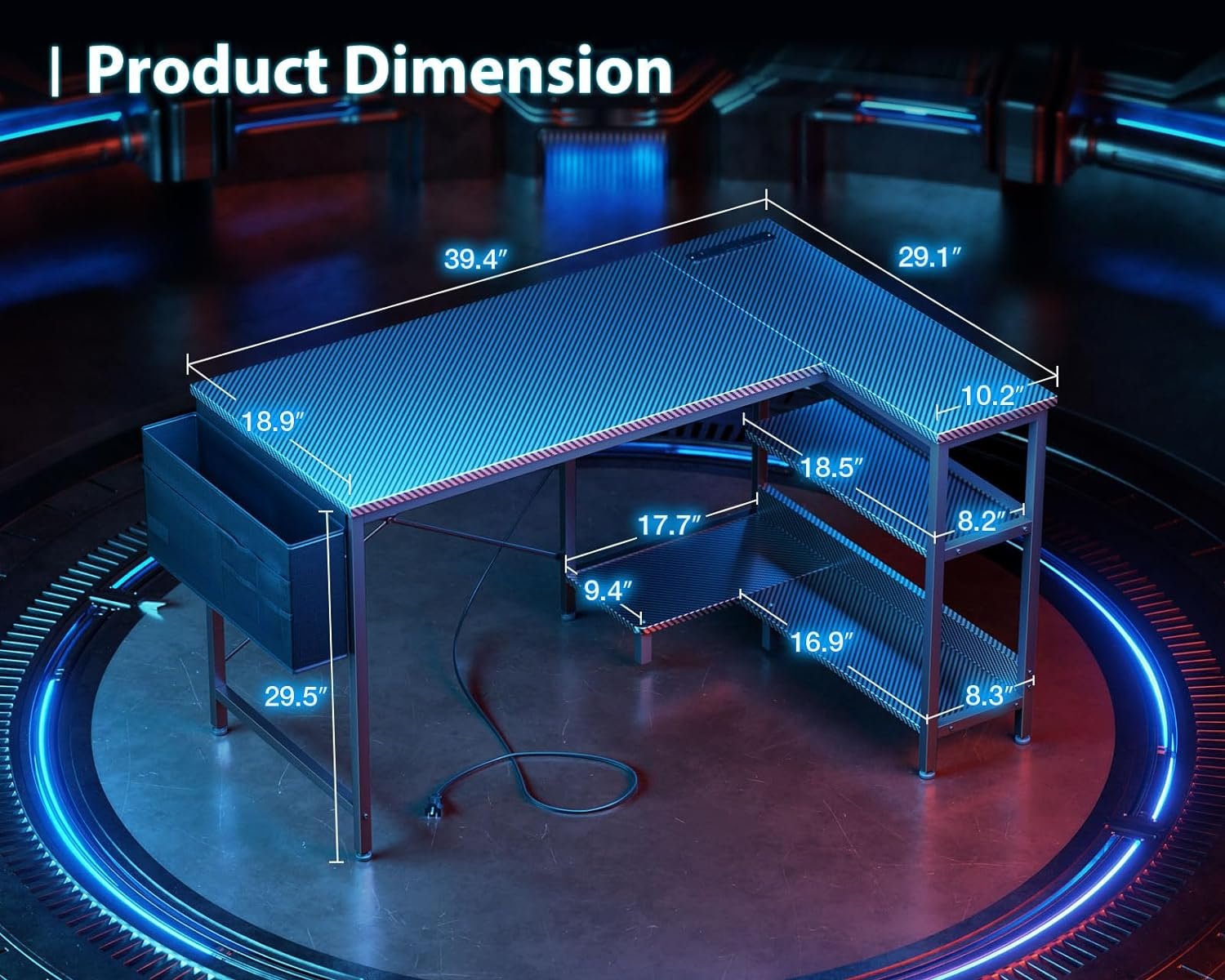 Sometimes I think furniture makers don’t quite understand what it’s like to live in a small space. They create massive, sprawling desks that only somebody with a warehouse-sized home could fit comfortably. That’s why when I stumbled upon the ODK 40 Inch Small L Shaped Gaming Computer Desk with Power Outlets, Corner Desk with Reversible Storage Shelves & PC Stand for Small Space, Modern Simple Home Office Table, Carbon Fiber Surface, Black, I felt like I was holding a Willy Wonka golden ticket.